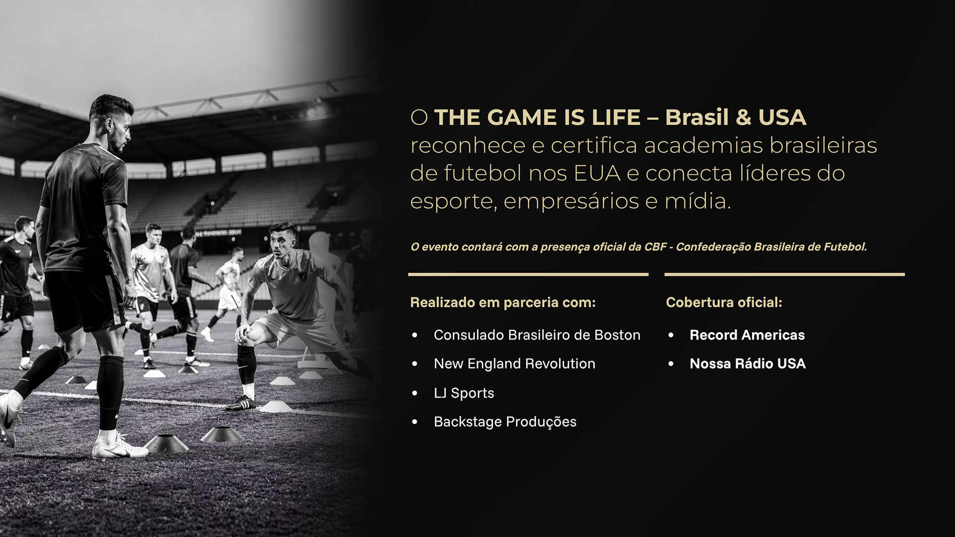 The Game is Life was created as a premium event bridging Brazil and the United States, combining sport, education, business and institutional presence into one unified experience. A premium event brand capable of: - Attracting high-level partners - Creating institutional credibility - Delivering a memorable experience - Positioning itself globally